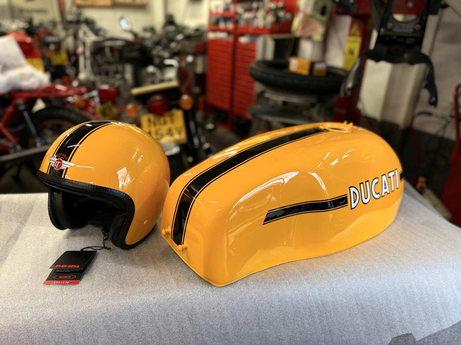 From subtle pinstriping to bold graphic layouts, every line is intentional. Finishes range from deep gloss to period-correct satin, depending on what suits the design (and the bike it’s paired with).